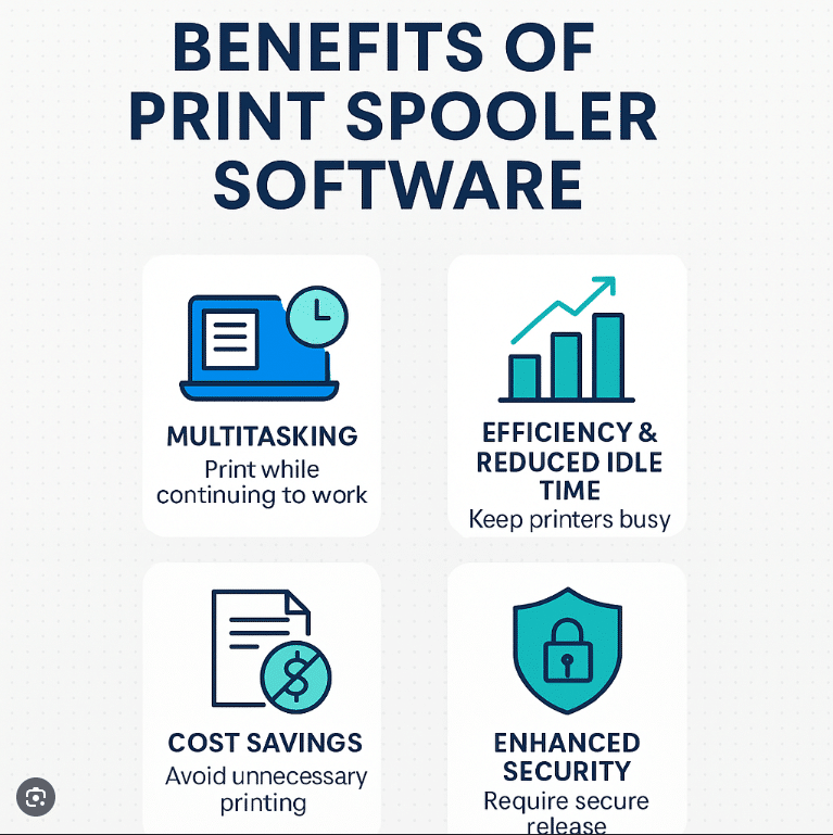 Acest mecanism este esențial mai ales în rețelele de birou, unde mai mulți utilizatori trimit simultan documente către aceeași imprimantă. Fără spooler, fiecare utilizator ar trebui să aștepte finalizarea completă a unei lucrări înainte de a putea trimite alta.